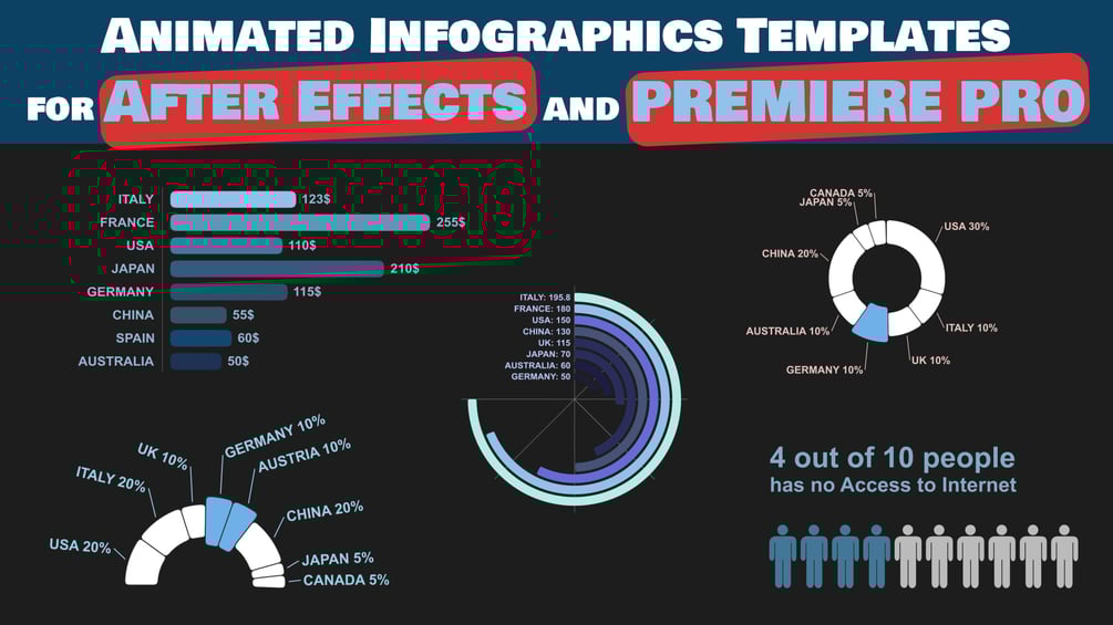 We Have Created an Infographic Template Bundle for Adobe Premiere Pro and Adobe After Effects, so that you can focus on the content and leave to us the tedious set up of the animation.
